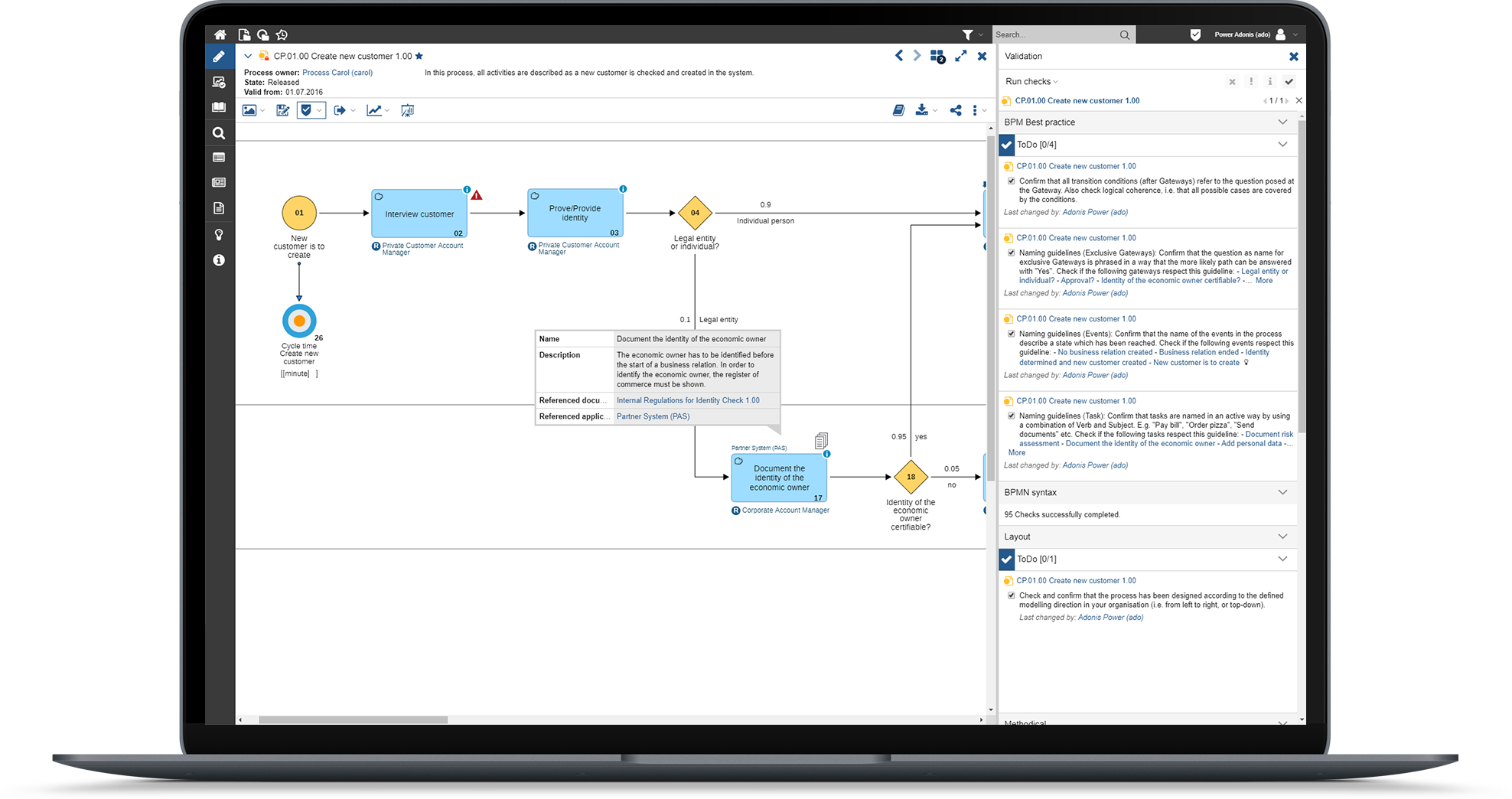 Το ADONIS είναι το πανίσχυρο καθημερινό εργαλείο BPM σας. Μοντελοποιήστε εκτενείς διαδικασίες πιο έξυπνα. Συνεργαστείτε με συναδέλφους. Αναλύστε χωρίς όρια. Εξατομικεύστε ό,τι χρειάζεστε. Και ικανοποιήστε όλες τις επιχειρηματικές σας ανάγκες. Ένα εργαλείο. Αμέτρητες δυνατότητες.